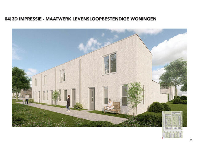 De levensloopbestendige woningen zijn ideaal voor mensen die gelijkvloers willen wonen of een zorgbehoefte hebben. De eengezinswoningen zijn perfect voor gezinnen
